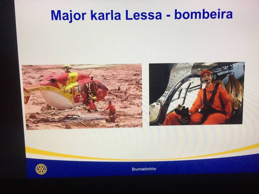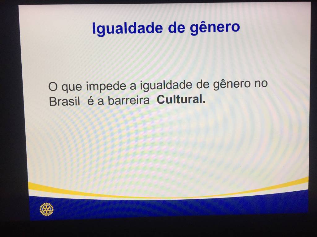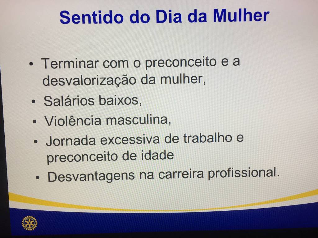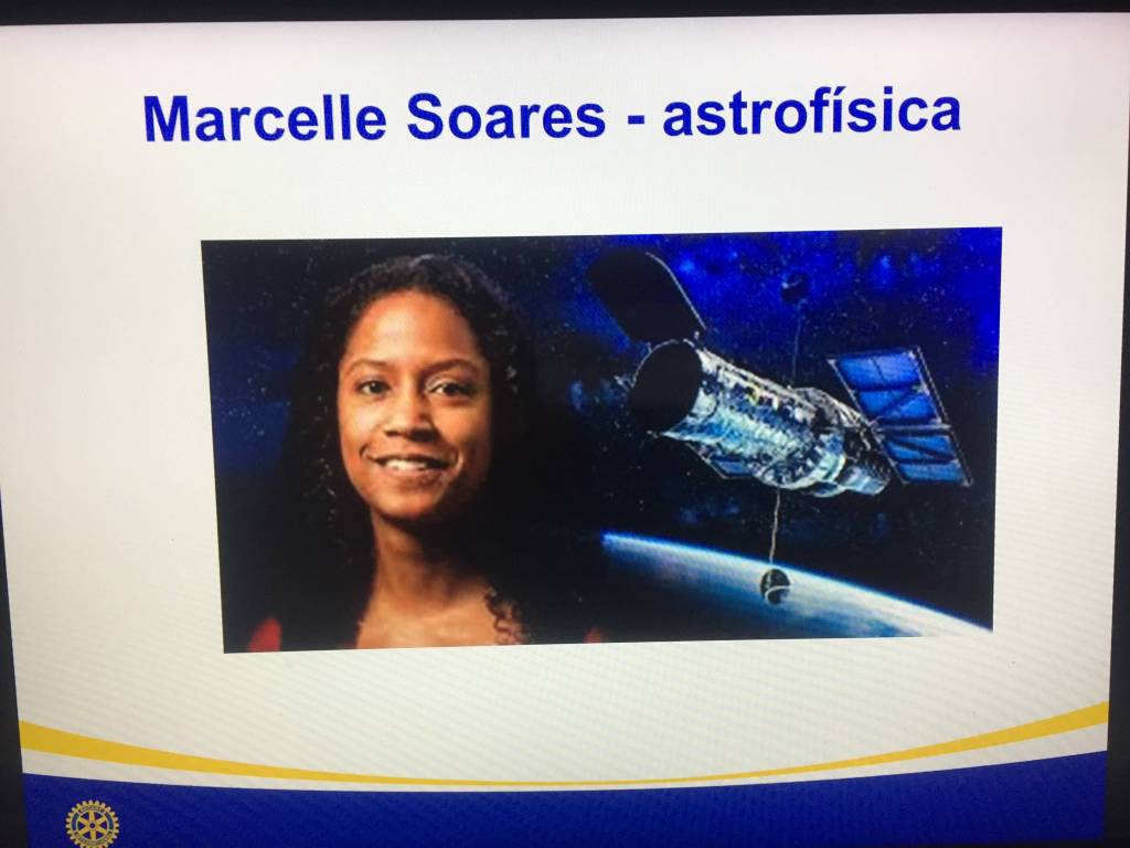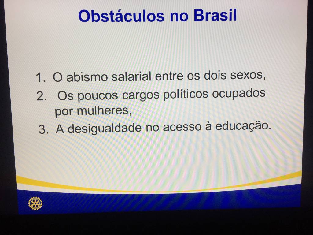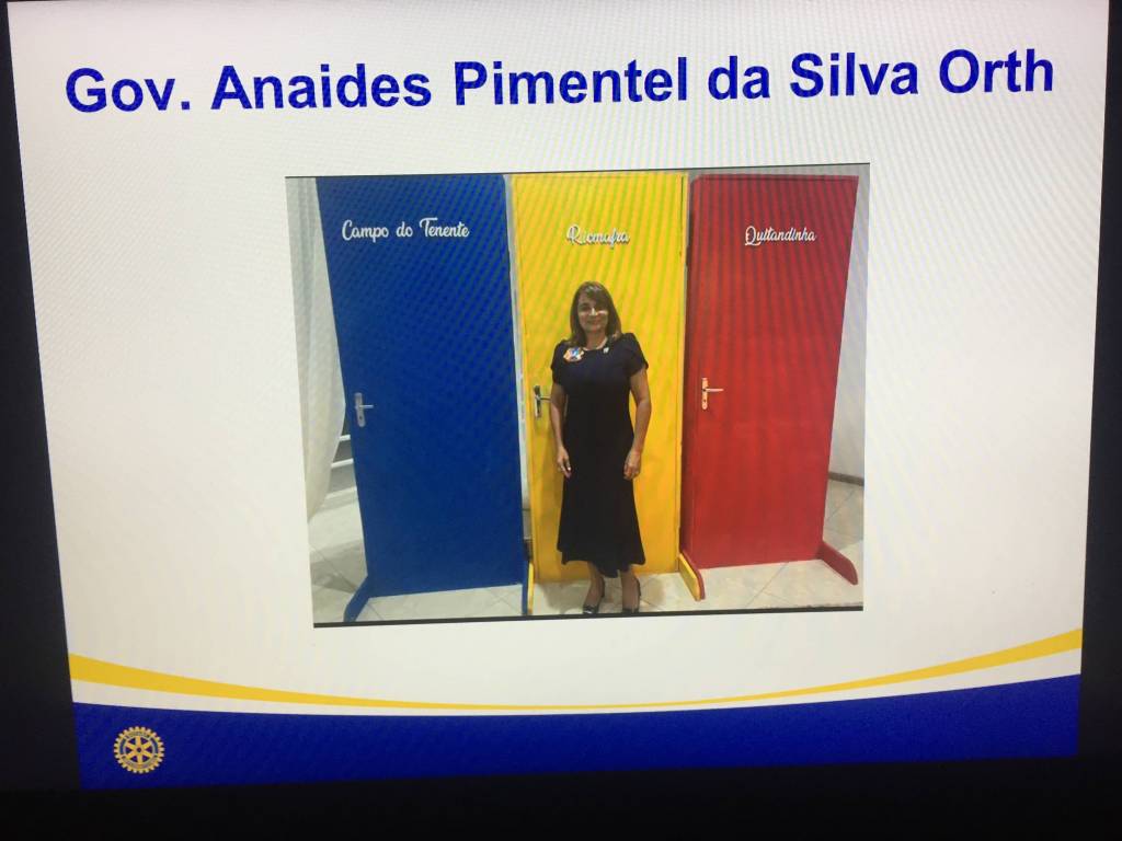 Abrilhantando sua exposição apresentou às histórias de algumas personalidades femininas e suas contribuições à sociedade brasileira e mundial, como a da Senhora Maria da Penha Fernandes, da Bombeira Major Karla Lessa, da Astrofísica Marcelle Soares, da Indígena Célia Xakriabá, da Jornalista Maju Coutinho, da Desembargadora Joeci Machado Camargo, da Paquistanesa Malala Yousafzai, da Microbiologista Dra. Natalia Pasternak Taschner, da Cientista e Pesquisadora Margareth Dalcolmo e em especial da nossa Governadora Anaides Pimentel da Silva Orth pelo reconhecimento e admiração da mulher compreensiva, lutadora, inteligente e sua devoção à família, e que tem trabalhado e atuado em nosso Distrito junto aos Clubes oferecendo oportunidades que podem e mudam as vidas das pessoas.