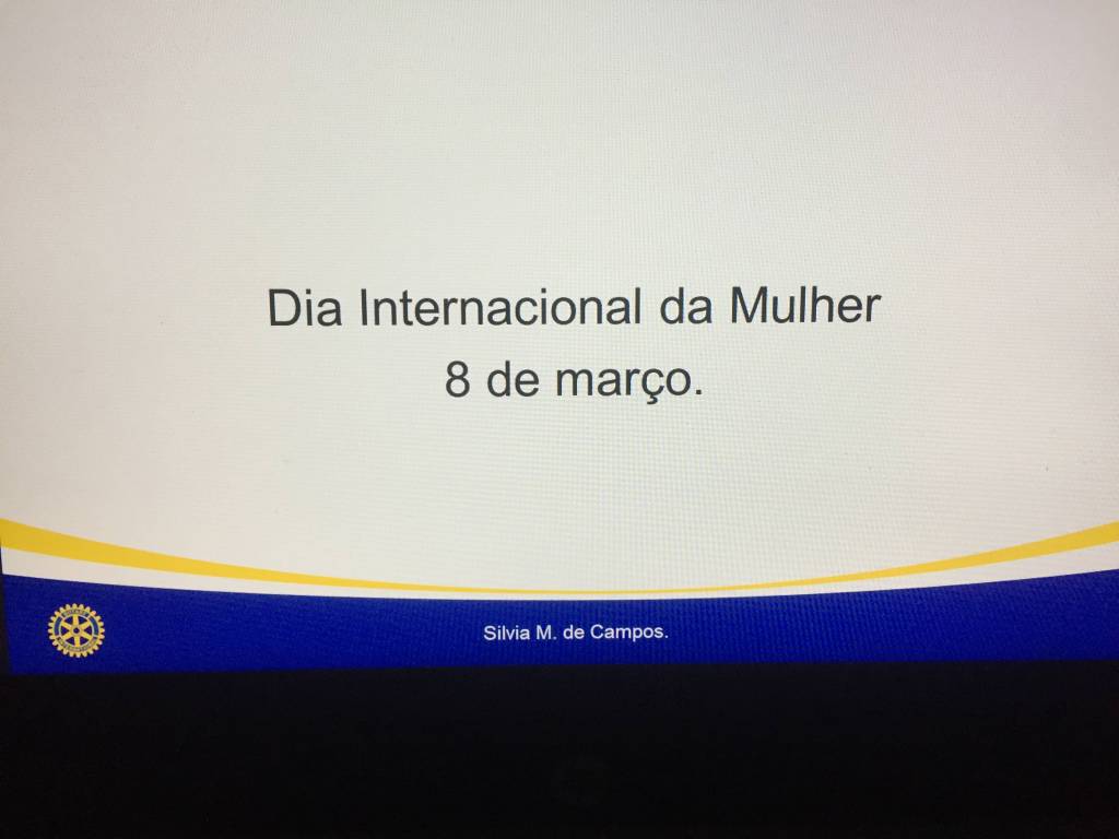 O Rotary Club de Curitiba Guabirotuba do Distrito 4730, em sua reunião ordinária de número 33 da gestão 2020-2021, na data de 02/03/2021, por meio da plataforma GoTomeeting contou com a participação da rotariana Governadora 1999-2000 - Silvia Maria de Campos do R.C.C. Gralha Azul, que gentilmente aceitou nosso convite para participar da atividade de Comemoração do Dia Internacional da Mulher (Dia 08 de Março).
