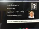 Inicia sua apresentação fazendo a leitura do texto de Gisela O’Neil &George O’Neil que diz “Na hora da morte, após anos de enérgico trabalho, ele deixa seus instrumentos de lado. Ele se construiu da substância da Terra. Primeiramente construiu as formas na moldura da hereditariedade, depois as remodelou, adicionado ou aparando ou modificando-as completamente até sentir que haviam tornado suas próprias. Por volta da metade da vida a escultura está pronto, cheia de vida e vigor. Contudo, a plenitude sensual das formas, seu vigor real, parece sobrecarregá-lo. Então ele toma os cinzéis e começa a refinar as formas. Purificá-las, desbasta o que obscurece a essência, descobre as formas espirituais interiores.” Após esta introdução discorre sobre os introdutores do Arquétipo Biográfico e Antroposofia citando Rudolf Steiner (1861-1925) e Gudrun Burkhard (1929). A Antroposofia é considerada como uma ciência espiritual moderna e prática. Apresenta uma visão peculiar em que o homem, na qualidade de indivíduo, torna-se senhor de seu destino – desde que desperto para a consciência de ser, ele próprio, autodeterminado e, portanto, potencialmente livre. Steiner relacionou o corpo do homem, a alma e o espírito, ou seja, através do corpo o indivíduo se relaciona com o externo, como o objeto se apresenta a ele; com a alma o homem se relaciona com o sentimento de agrado ou desagrado e associa ao seu próprio existir, e por espírito é o que se revela no homem quando ele contempla as coisas como se fosse um ente divino. “O homem é, assim, cidadão de três mundos. Por meio de seu corpo, pertence ao mundo que ele percebe com esse mesmo corpo; por meio de sua alma, edifica para si seu próprio mundo; por meio de seu espirito se lhe manifesta um mundo elevado acima dos outros dois” (STEINER, 2004).
