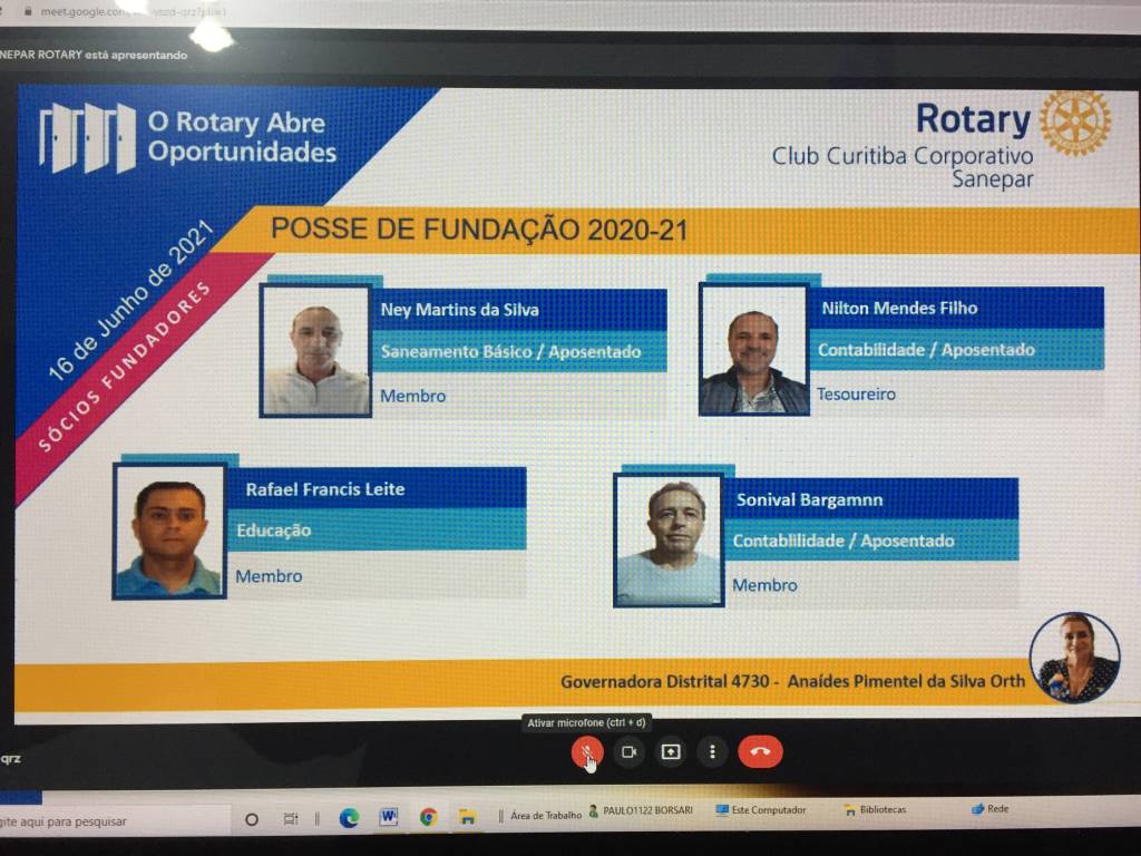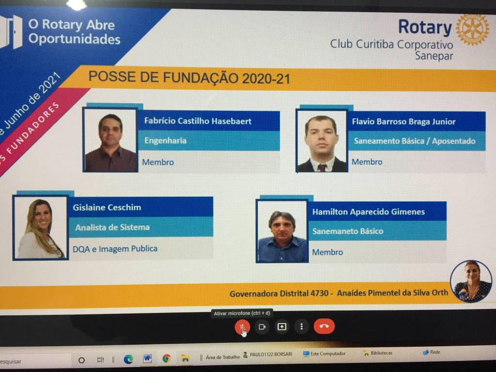Registramos com muita satisfação e alegria que o nosso afilhado Rotary Club de Curitiba Corporativo Sanepar, na data de 16/06/2021, realizou a solenidade de Posse do Conselho Diretor 2020-2021 /2021-2022.
