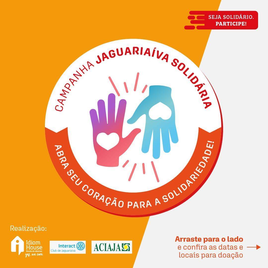 Projeto em parceria com a Escola de Línguas Idiom House, Aciaja e o Interact Club de Jaguariaíva. Com o objetivo de arrecadar alimentos não perecíveis às famílias carentes do município. Devido este período difícil que estamos passando com a pandemia, muitas famílias perderam seus empregos, suas rendas e não tem dinheiro para comprar o que lhes é essencial, o alimento. Com o desejo de ajudar a quem está precisando realizamos estas parcerias nesta campanha.