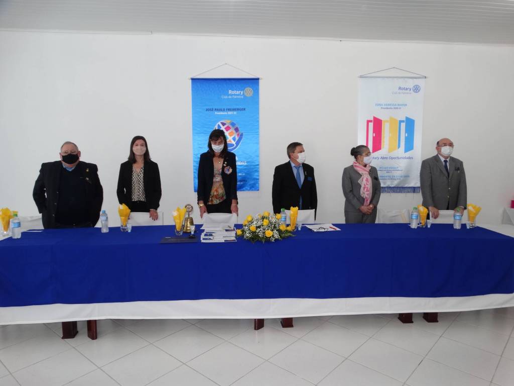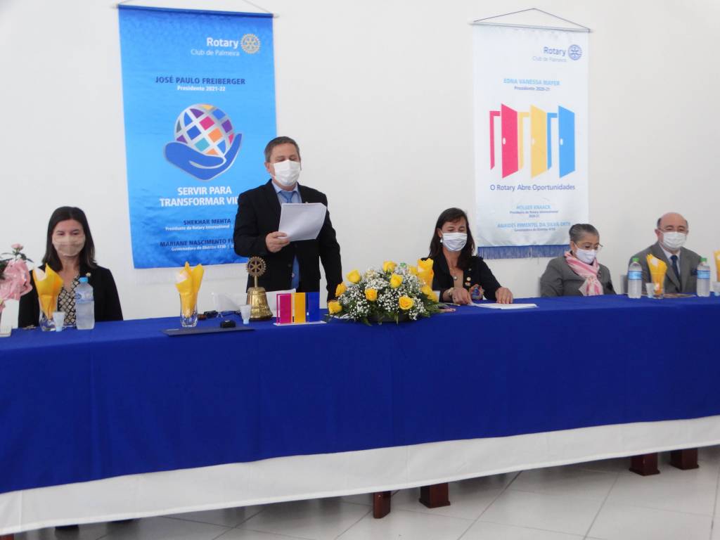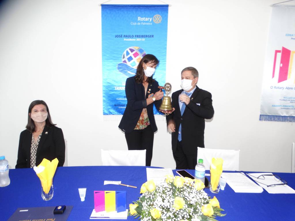 No último dia 11/07/2021 ocorreu a Cerimônia de Transmissão de Posse na sede do Rotary Club de Palmeira. Estiveram presentes rotarianos e convidados. O Presidente do Rotary José Paulo Freiberger e sua esposa Eva Souza, Presidente da Casa da Amizade, assumirão por um ano junto com a nova diretoria do clube. Servir para transformar vidas, lema deste ano rotário.